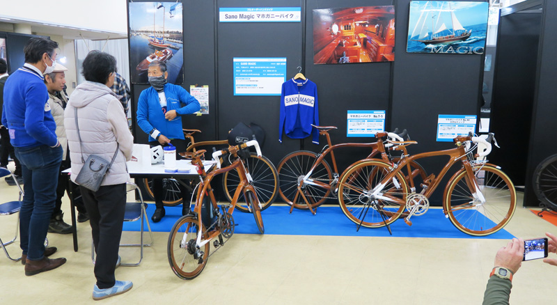 SANOMAGICもマホガニーバイク44号機(スポルティフ)と末四郎の愛機T-5を展示しました。