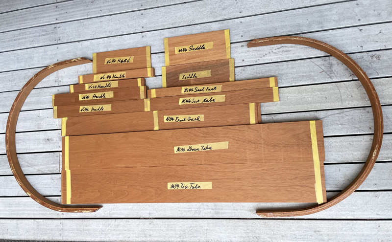 9月22日、マホガニーバイク44号機の各部を作るマホガニー薄板を切り出した。