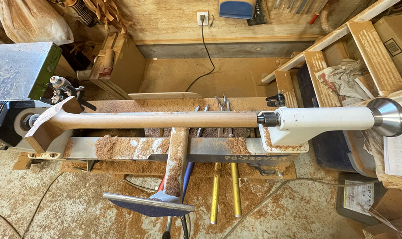積層体でできたシートポストを旋盤で削って円柱状にする。