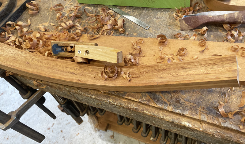 曲面カンナ(丸カンナ)で、マッドガードの内側にへこみを作る。